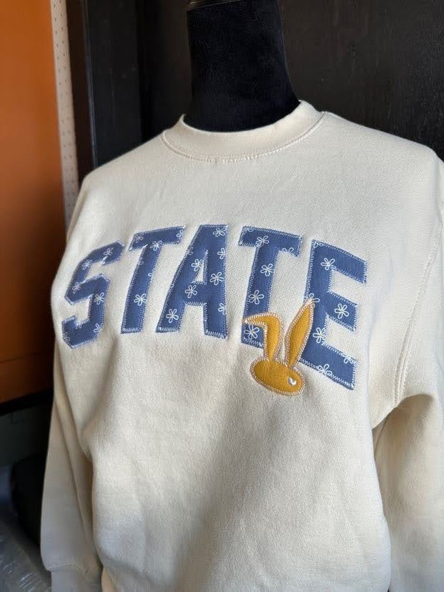 Lane 7 Brand Crewneck with State+Bunny Applique